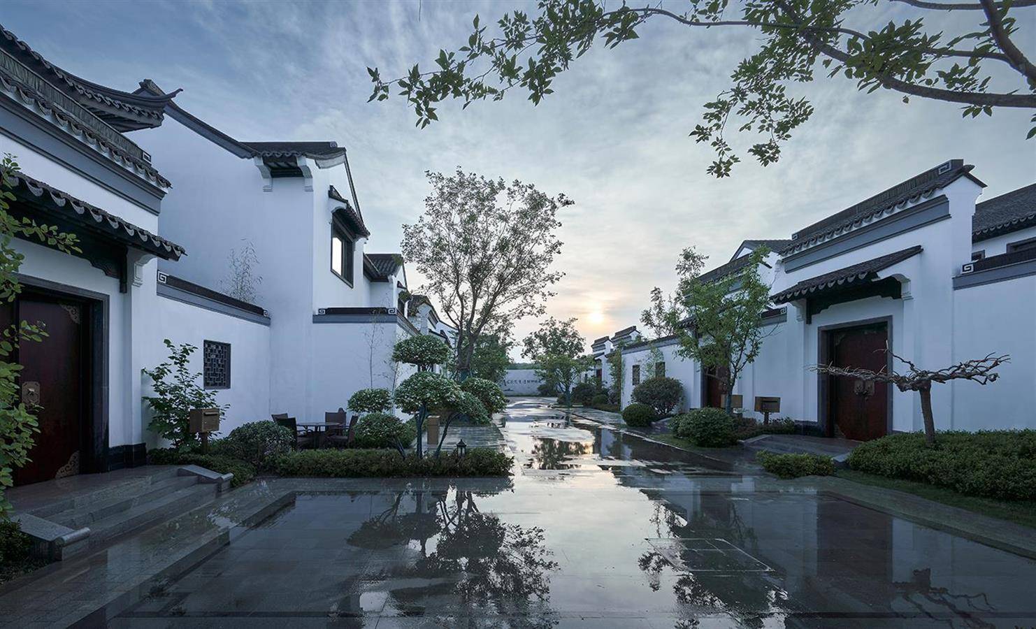 在日益西化的生活方式与生活节奏下,中国传统的居住理念,重拾对场地的人文关怀、再现对空间的美学诉求,人们凝聚于此,念兹在兹。这里既有精神生活的从容余裕,也有情感生活的亲密丰沛。“天人合一”的东方哲学孕育了中式居住的建筑规制与布局形态,开启人与自然、人与人以及人与精神世界的思考。